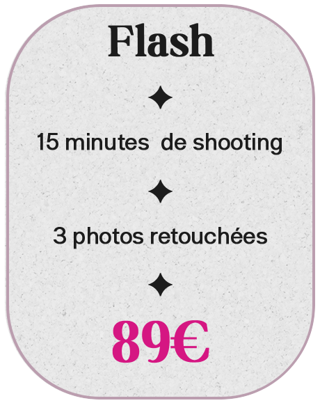 C’est elle qui vous accompagne avant, pendant et après le shooting. Elle sélectionne avec soin vos meilleures prises, gère les échanges et vous guide avec bienveillance tout au long de l’expérience.